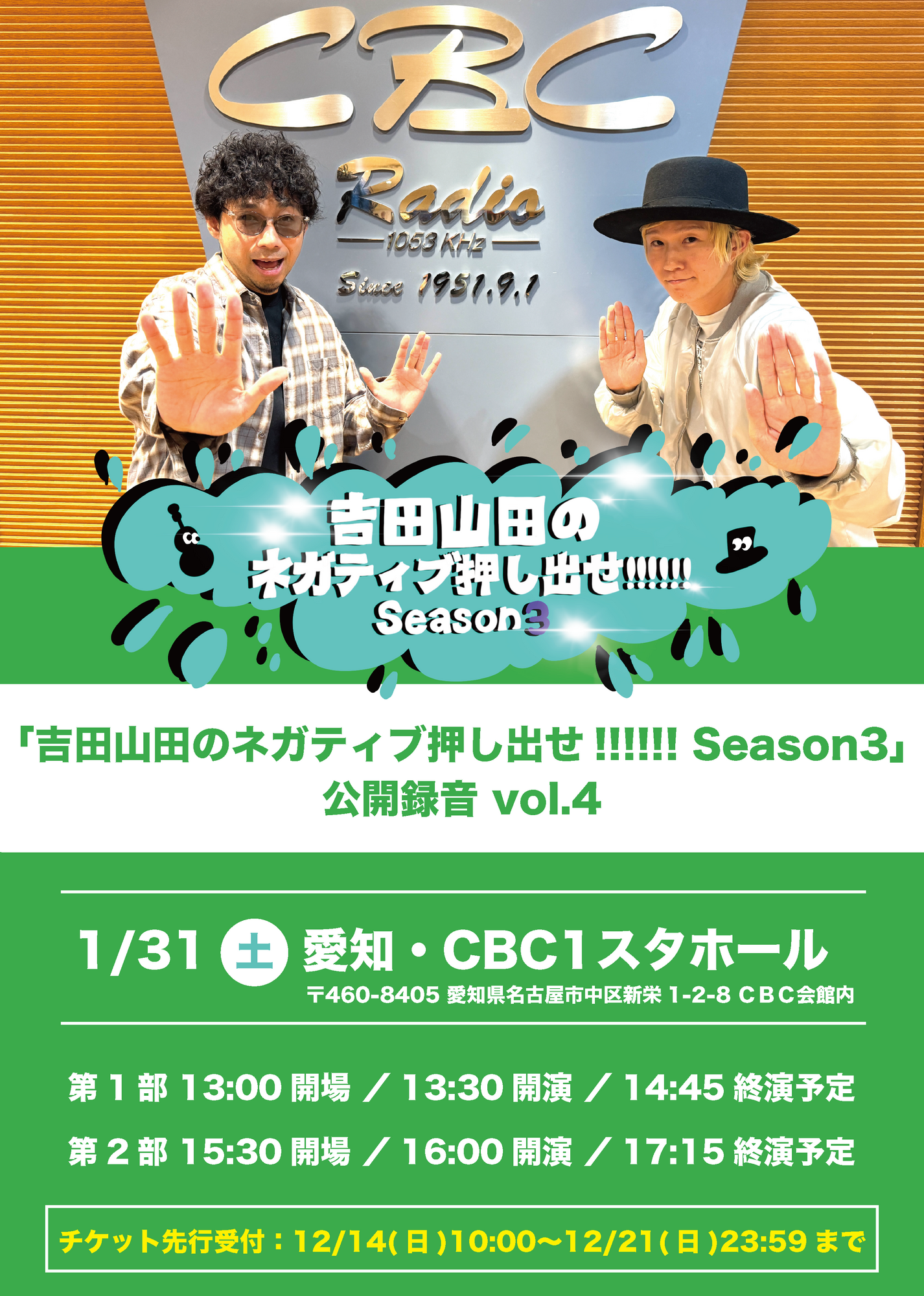1月31日(土) <CBCラジオ「吉田山田のネガティブ押し出せ!!!!!! Season3」公開録音 vol.4>開催決定!