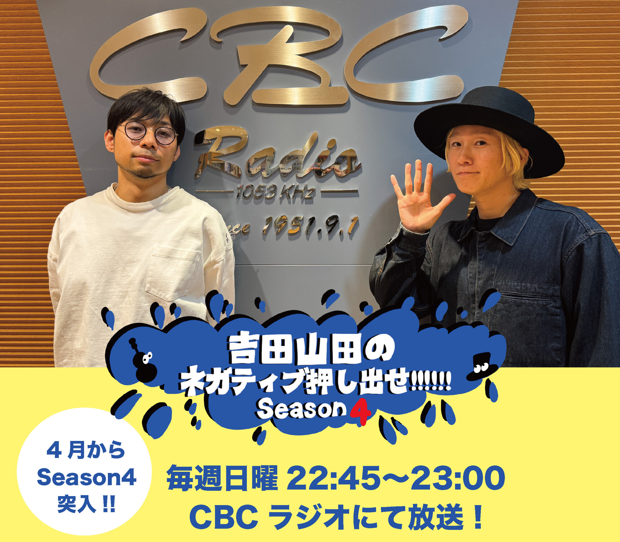★レギュラー番組★CBCラジオ「吉田山田のネガティブ押し出せ!!!!!! Season4」(毎週日曜22:45〜23:00)
