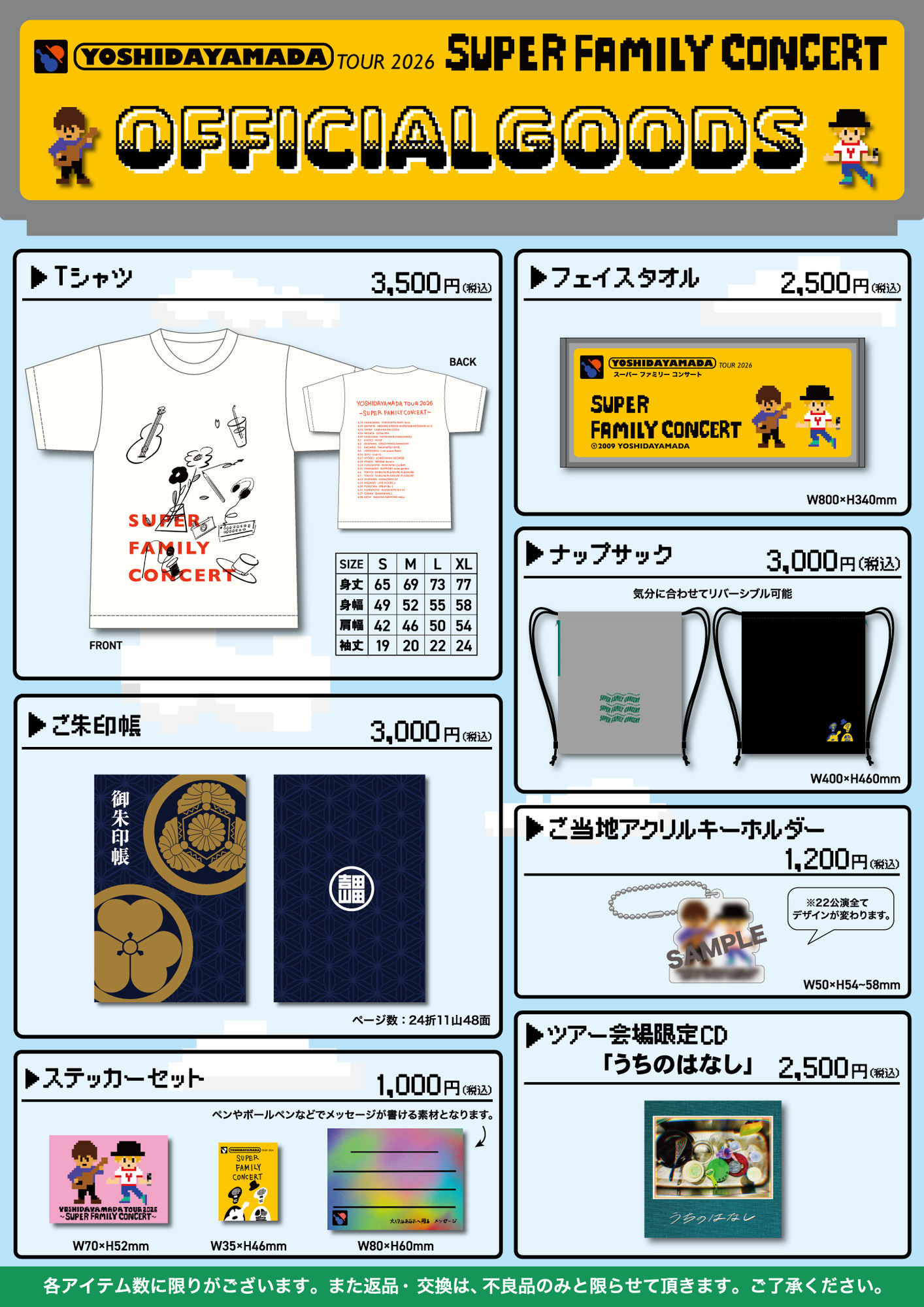 <吉田山田ツアー2026〜SUPER FAMILY CONCERT〜>のオフィシャルグッズが完成!